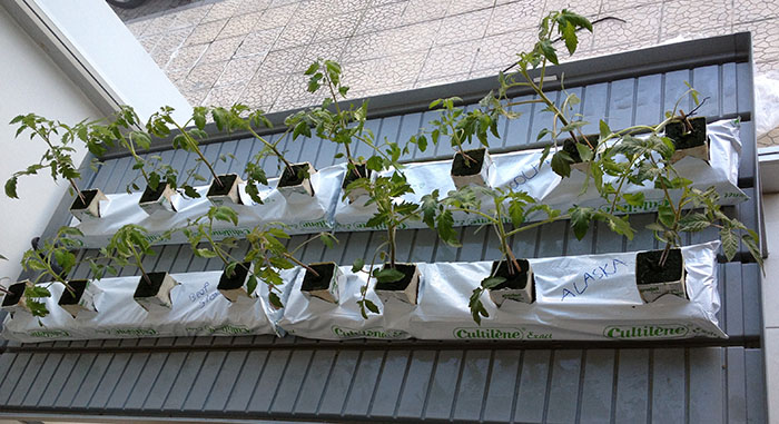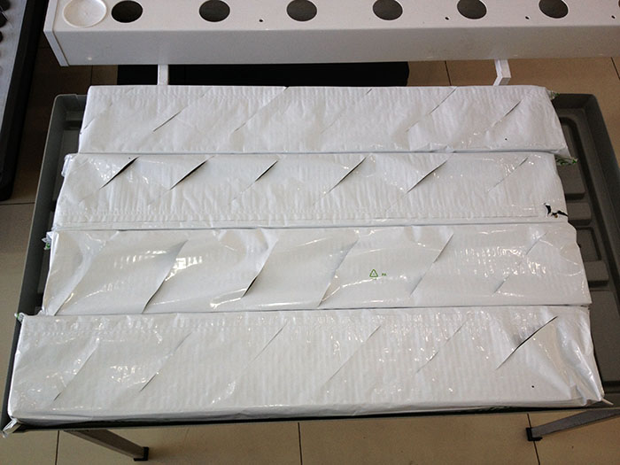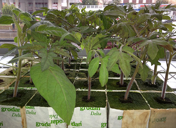 Slablarımızı aynı rocwool blokları hazırladığımız gibi hazırlamamız gerekiyor. Ph oranını 5.5 olan besin solüsyonlu suyumuzu slabların hepsini alacak şekilde bir kaba doldurmamız gerekiyor. Toplam 4 slab kullanacağız ve her bir slaba 4 farklı tür domates ekeceğiz. Ekim için Cultilene 90/15/7.5 slab kullanıyoruz.
