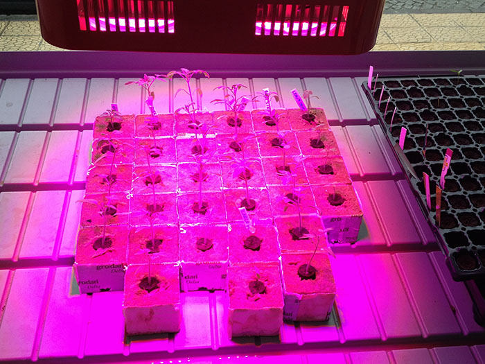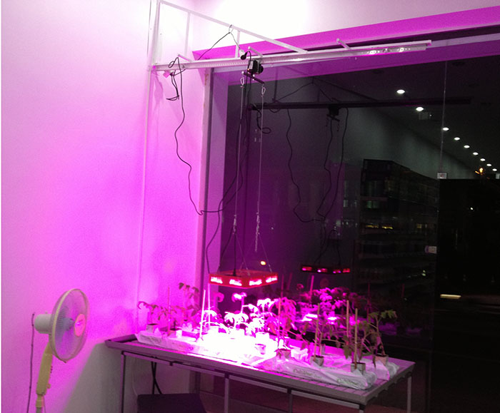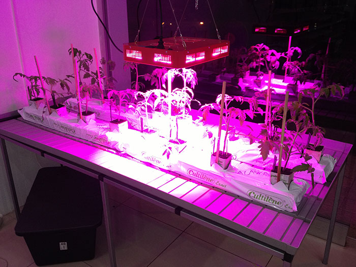 İç mekanda yetiştiricik yapacağımızdan bitkilerin üzerine led lamba yakıyoruz. Başlangıç için florasan lambalarda kullanılabilir. Eğer florasan ile başlanacaksa ileride özellikle domates,biber gibi üstten asmalı bitkilerde HID lambalar veya led lambalar kullanmamız gerekmektedir. Aski takdirde sadece florasanlarla kapalı alanda üstten asmalı bitkilerle yetiştiricilik yapmak hüsran olacaktır.