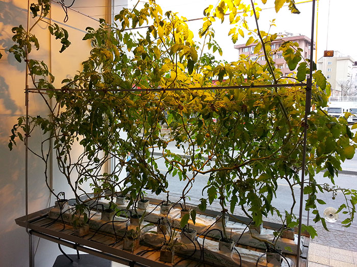 Sistem olarak damlama sistemi kullanacağız. Rezervuara bağlı olan bir motor, suyu boru hattından damlatıcılara gönderiyor. Bloklara saplanmış olan kazıklara damlatıcılar oturtuluyor ve sistemimiz çalıştırılıyor. Sistem ışıklar açık olduğu sürece çalışıyor, ışıklar kapanınca sistemde kapanıyor.